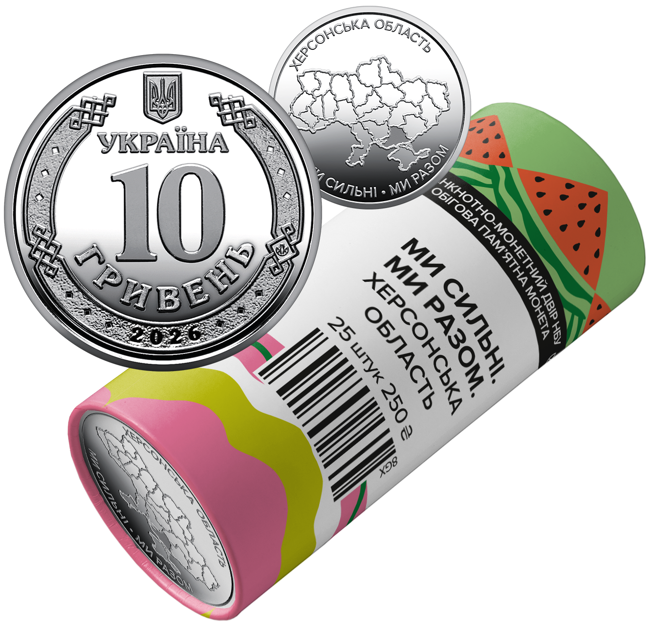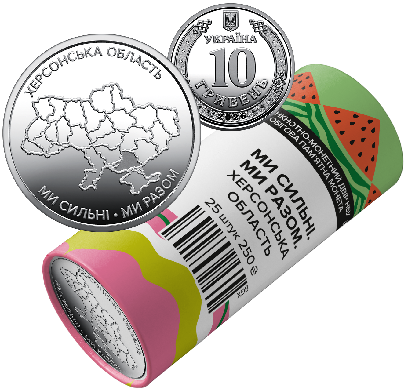 Ролик обігових пам`ятних монет "Ми сильні. Ми разом. Херсонська область" (у ролику 25 монет)