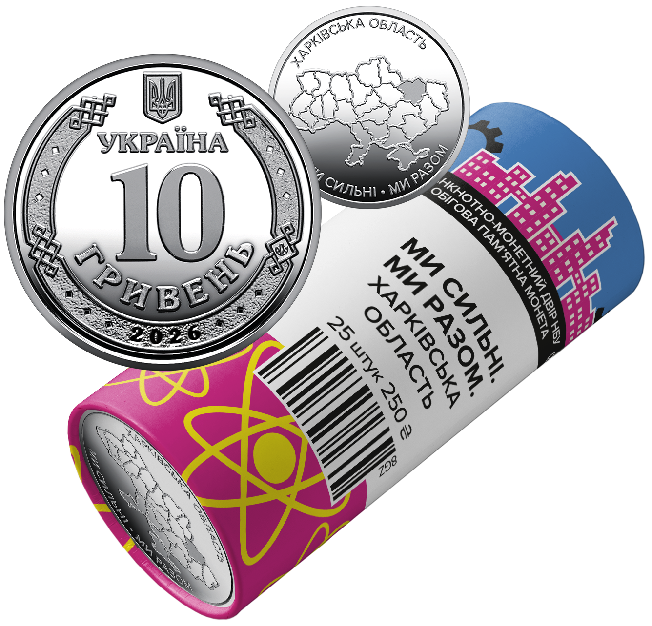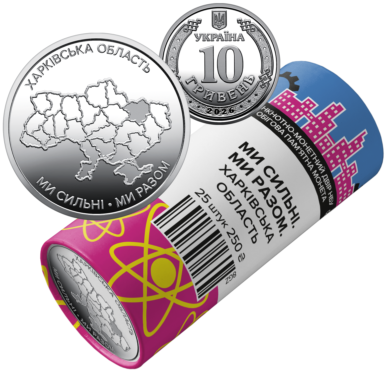 Ролик обігових пам`ятних монет "Ми сильні. Ми разом. Харківська область" (у ролику 25 монет)