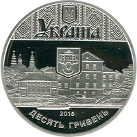 На аверсі монети розміщено: угорі на тлі орнаменту - малий Державний Герб України, під яким напис УКРАЇНА; у центрі на дзеркальному тлі - панорама сучасного міста Тернопіль, над якою герб міста; унизу: рік карбування - 2015; напис півколом ДЕСЯТЬ ГРИВЕНЬ. |