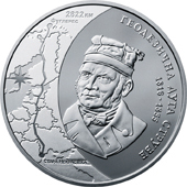 На реверсі монети на дзеркальному тлі зображено портрет Струве, праворуч від якого написи півколом: ГЕОДЕЗИЧНА ДУГА СТРУВЕ/1816 - 1855 - роки, протягом яких проводились вимірювання; ліворуч від портрета - стилізована композиція: на тлі географічної карти дуга Струве та написи: ФУГЛЕНЕС, 2822 км (угорі) та СТАРА НЕКРАСІВКА (унизу). |