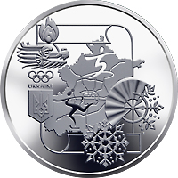 Крім того, на реверсі монети розміщено: сніжинку (унизу), логотип Національного олімпійського комітету України (ліворуч), над яким голова дракона і вогонь – один із символів Олімпійських ігор.