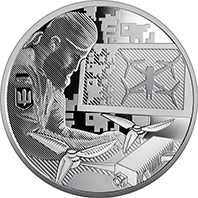 На реверсі монети зображено постать українського зброяра, зосередженого на створенні одного з найефективніших на сьогодні видів озброєння – БпЛА. Це збірний образ українських інженерів, конструкторів та інших технічних спеціалістів, чиї знання, ідеї та інновації перетворюються на інструменти захисту держави. Їхня робота не щодня потрапляє до фронтових хронік, але суттєво впливає на перебіг війни.