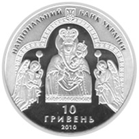 На аверсі монети розміщено малий Державний Герб України, напис півколом НАЦІОНАЛЬНИЙ БАНК УКРАЇНИ (угорі), номінал, рік карбування монети - 10/ГРИВЕНЬ/2010 (унизу) та зображено чудотворну ікону Зарваницької Матері Божої, з лівого і правого боків - ангели з іконостаса. |