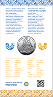 На аверсі монети розміщено: угорі малий Державний Герб України, ліворуч і праворуч від якого написи півколом – УКРАЇНА, рік карбування монети 2023; номінал П’ЯТЬ ГРИВЕНЬ, у центрі зображено наповнену народним колоритом картину Олега Шупляка “Колиска”, на якій втілено один з найдорожчих архетипів українців – батьківська хата в оточенні мальв та рушника, яка є водночас колискою та гніздечком, що символізує продовження роду; унизу на дзеркальному тлі – логотип Банкнотно-монетного двору Національного банку України. |