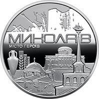 На аверсі медалі розміщено: угорі написи – 2023 / УКРАЇНА, унизу – малий Державний Герб України, у центрі, на тлі стилізованої карти міста, рядки з історичного роману Ліни Костенко “Берестечко”: Я ЗНАЮ ГРАМОТУ СВОБОДИ – / ЇЇ ПІДПИСУЮТЬ МЕЧІ! / ЛІНА КОСТЕНКО; стилізовану композицію, яка підкреслює, що Миколаїв – місто суднобудування та морський порт; праворуч – будівля єдиного в країні Миколаївського музею суднобудування; логотип Банкнотно-монетного двору Національного банку України (ліворуч). |
