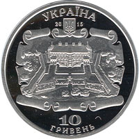 На аверсі монети розміщено: угорі напис УКРАЇНА, під яким - малий Державний Герб України; унизу номінал -10/ГРИВЕНЬ, у центрі - стилізований бароковий картуш із зображенням плану замку. На монеті з нейзильберу унизу ліворуч розміщено логотип Монетного двору Національного банку України. |