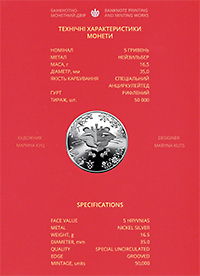 На аверсі монети розміщено: угорі – малий Державний Герб України, праворуч від якого напис півколом УКРАЇНА; на дзеркальному тлі по колу зображені 12 символів східного календаря, у центрі кола – стилізований годинник зі стрілкою, що вказує на тигра – символ року, під стрілкою – 2022; унизу ліворуч напис півколом 5 ГРИВЕНЬ; на матовому тлі зображені стилізовані під українську витинанку символи кожної пори року: сніжинка (угорі), квітка (праворуч), ягода (унизу), листок (ліворуч); логотип Банкнотно-монетного двору Національного банку України (ліворуч від символу кролика). |