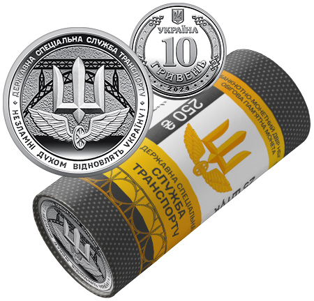 Ролик обігових пам’ятних монет `Державна спеціальна служба транспорту` (у ролику 25 монет)
