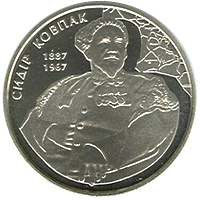 На реверсі монети на тлі карти зображено портрет Сидора Ковпака, ліворуч написи: СИДІР КОВПАК (півколом) та роки життя 1887/1967. |