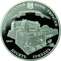 | На аверсі монети розміщено: угорі малий Державний Герб України, напис півколом НАЦІОНАЛЬНИЙ БАНК УКРАЇНИ; під гербом на стрічці напис - УЖГОРОДСЬКИЙ ЗАМОК; у центрі зображено Ужгородський замок, обнесений захисним муром, на тлі якого гілочка сакури; ліворуч - рік карбування монети 2013; унизу на дзеркальному тлі - номінал - ДЕСЯТЬ ГРИВЕНЬ. |