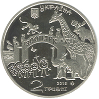 | На аверсі монети розміщено: угорі малий Державний Герб України та напис півколом УКРАЇНА, стилізовану композицію: зображено тварин зоопарку, які зустрічають маленьких відвідувачів біля входу; унизу - рік карбування монети 2015, номінал 2 ГРИВНІ, логотип Монетного двору Національного банку України (праворуч). |