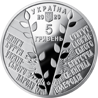 | На аверсі монети розміщено: угорі на дзеркальному тлі – малий Державний Герб України, по обидва боки від якого – 2020, над гербом – напис УКРАЇНА; під гербом – номінал монети 5/ГРИВЕНЬ; по обидва боки від герба та написів – стилізовані пагони з листками; написи на матовому тлі: КNИГИ/ БУТТЯ/ УКРАЇN-/СЬКОГО/ NАРОДУ (ліворуч), СТАТУТ/ СЛОВ’ЯN-/СЬКОГО/БРАТСТВА/СВ. КИРИЛА/ І МЕФОДІЯ (праворуч); логотип Банкнотно-монетного двору Національного банку України (унизу). |