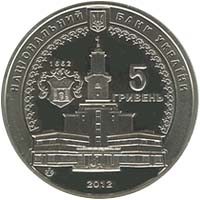 | На аверсі монети розміщено угорі: малий Державний Герб України, напис півколом НАЦІОНАЛЬНИЙ БАНК УКРАЇНИ, будівля міської ратуші, ліворуч від якої герб міста з написом 1662, унизу рік карбування монет - 2012 та праворуч від ратуші номінал - 5/ГРИВЕНЬ, унизу ліворуч розміщено логотип Монетного двору Національного банку України. |