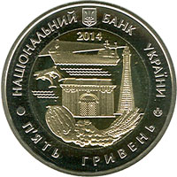 | На аверсі монети розміщено: угорі малий Державний Герб України, під яким рік карбування монети 2014; написи півколом: НАЦІОНАЛЬНИЙ БАНК УКРАЇНИ (угорі), П`ЯТЬ ГРИВЕНЬ (унизу), праворуч - логотип Монетного двору Національного банку України; у центрі - брама Херсонської фортеці, одна з найстаріших споруд міста Херсона, праворуч від якої - Аджигольський маяк, побудований за проектом інженера і вченого Володимира Шухова, символ порту та суднобудування - судно (над брамою), ліворуч - три дельфіни, унизу - дари ланів Херсонщини - кавун, помідор, виноград, колосся. |