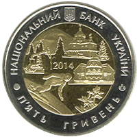| На аверсі монети розміщено: угорі малий Державний Герб України, по колу написи: НАЦІОНАЛЬНИЙ БАНК УКРАЇНИ (угорі), П`ЯТЬ ГРИВЕНЬ (унизу), праворуч - логотип Монетного двору Національного банку України; стилізовану композицію: зображено дерев`яну церкву на тлі гори Говерли, Коломийський музей `Писанка`, нафтовидобувний верстат-качалку, у центрі рік карбування монети - 2014, а також сноубордиста та квітки едельвейса. |