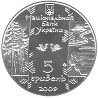 | На аверсі монети угорі розміщено малий Державний Герб України, під яким стилізований напис - НАЦІОНАЛЬНИЙ/ БАНК/ УКРАЇНИ, у центрі - стилізоване зображення двох птахів, ліворуч і праворуч - карпатський пейзаж зі смереками, хатинами та колодами, унизу - написи 5/ ГРИВЕНЬ/ 2009. |