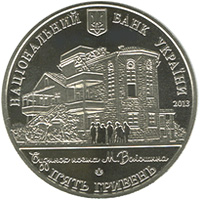 | На аверсі монети розміщено: угорі малий Державний Герб України та напис півколом НАЦІОНАЛЬНИЙ БАНК УКРАЇНИ, у центрі - зображення Будинку Поета та силуетів людей перед ним, що уособлює `гостинний дух` оселі господаря, під яким унизу напис БУДИНОК ПОЕТА М. ВОЛОШИНА, праворуч від якого позначення року карбування монети 2013; унизу - логотип Монетного двору Національного банку України та номінал П`ЯТЬ ГРИВЕНЬ. |