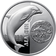 На реверсі монети ліворуч на дзеркальному тлі зображено дельфіна, стилізовані хвилі (унизу), праворуч від яких - вертикальний напис ДЕЛЬФІН, праворуч на матовій поверхні розміщено ольвійську монету із зображенням дельфіна. |