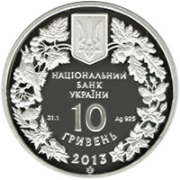 | На аверсі монети в обрамленні вінка, утвореного із зображень окремих видів флори і фауни, розміщено малий Державний Герб України та написи: на монеті зі срібла - НАЦІОНАЛЬНИЙ/ БАНК/ УКРАЇНИ/ 10/ ГРИВЕНЬ/ 2013, а також позначення металу та його проби - Ag 925, маса в чистоті - 31,1, та логотип Монетного двору Національного банку України. |
