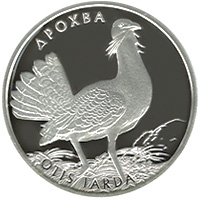 На реверсі монети зображено дрохву та розміщено написи: ДРОХВА (угорі) та OTIS TARDA (унизу на тлі трави) |