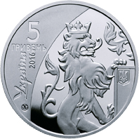 | На аверсі монети розміщено: ліворуч на матовому тлі номінал 5/ГРИВЕНЬ, написи вертикально УКРАЇНА, рік карбування монети 2016 та логотип Банкнотно-монетного двору Національного банку України; праворуч на дзеркальному тлі зображено геральдичного лева - символ Галицько-Волинської держави, який тримає щит, на щиті - малий Державний Герб України. |