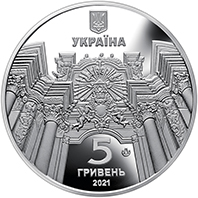 | На аверсі монети розміщено: малий Державний Герб України, під яким напис УКРАЇНА; фрагмент інтер’єру центрального нефу, унизу на дзеркальному тлі номінал монети і рік карбування – 5/ГРИВЕНЬ/2021; логотип Банкнотно-монетного двору Національного банку України (унизу праворуч). |