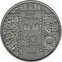 | На аверсі монети розміщено: угорі малий Державний Герб України, під яким стилізований напис - НАЦІОНАЛЬНИЙ/БАНК/УКРАЇНИ, у центрі - стилізоване зображення двох пташок, ліворуч і праворуч - гончарні вироби, унизу - написи: 10/ ГРИВЕНЬ/ 2010. |
