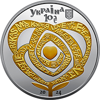 | На аверсі монети на дзеркальному тлі розміщено: стилізовану у вигляді серця троянду (елемент оздоблення – локальна позолота), у графічне полотно якої вписано слово “кохання” найпоширенішими мовами світу, що підкреслює універсальність та безмежність цього почуття, яке не знає кордонів та мовних бар’єрів; малий Державний Герб України, напис УКРАЇНА (крапки над літерою “ї” зображено у формі серця), номінал 10 та графічний символ гривні (угорі над трояндою); напис 20 / 24 (унизу). |
