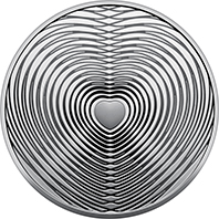 На реверсі монети на дзеркальному тлі рельєфно зображено серце, від якого рівномірно розходяться хвилі. Стилізована композиція є символом щирого та всеосяжного кохання, вібрації якого сягають найпотаємніших глибин душі. |
