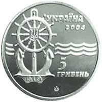 | На аверсі монети ліворуч зображено якір та штурвал, на тлі якого – малий Державний Герб України, посередині – горизонтальні символічні хвилі, під і над якими праворуч від якоря розміщено написи: на монеті зі срібла – УКРАЇНА/2004 (угорі), 10/ГРИВЕНЬ, а також позначення металу та його проби – Ag 925, вага в чистоті – 31,1 (унизу); на монеті з нейзильберу – УКРАЇНА/2004 (угорі), 5/ГРИВЕНЬ (унизу). На обох монетах – логотип Монетного двору Національного банку України. |