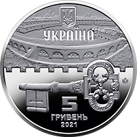 | На аверсі монети розміщено: угорі на тлі стилізованої композиції, присвяченій Київській фортеці (фрагмент арочного входу), – малий Державний Герб України, під яким – напис УКРАЇНА; унизу на дзеркальному тлі – ключ, під яким написи – 5/ГРИВЕНЬ/2021; логотип Банкнотно-монетного двору Національного банку України (праворуч від ключа). |