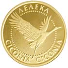 На реверсі монети у намистовому колі зображено лелеку, що злітає, між зовнішнім кантом монети і намистовим колом - кругові написи: ЛЕЛЕКА (угорі), CICONIA CICONIA (унизу). |