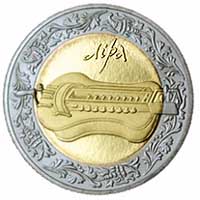 На реверсі монети зображено ліру, по колу - бароковий орнамент і стилізований під козацький шрифт напис ЛІРА. |