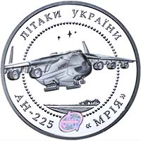 Розпочинає нову серію `Літаки України`, мета якої відобразити більше ніж піввікову діяльність Авіаційного науково-технічного комплексу імені О.К.Антонова та значні досягнення сучасного українського літакобудівництва. Монета присвячена унікальному широкофюзеляжному надважкому літаку, що призначений для транспортування великогабаритних вантажів вагою до 250 тонн, перший політ якого відбувся в грудні 1988 року. На рахунку літака - 214 національних авіарекордів та 124 світових.