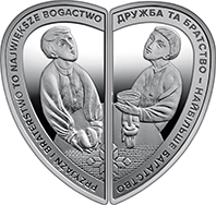 На реверсі монет розміщено написи півколом: ДРУЖБА ТА БРАТСТВО – НАЙБІЛЬШЕ БАГАТСТВО (на монеті номіналом 10 гривень); PRZYJAZN I BRATERSTWO TO NAJWIEKSZE BOGACTWO (на монеті номіналом 10 злотих). |