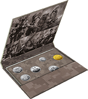 | До набору входять: розмінна монета номіналом 50 копійок, обігові монети номіналами 1, 2, 5, 10 гривень та обігові пам’ятні монети номіналом 10 гривень – “Національна гвардія України”, “Сили безпілотних систем Збройних Сил України”, “Національна поліція України”, “Державна служба України з надзвичайних ситуацій”. |