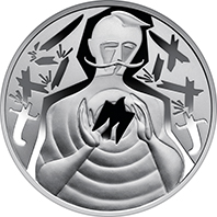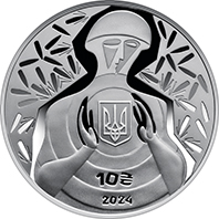 | На аверсі монети в центрі композиції зображено стилізовану постать військового, який обережно тримає в руках і захищає малий Державний Герб України – символ свободи та незалежності. Композиція символізує споконвічне прагнення українського народу жити у власній суверенній державі. На матовому тлі – ворожі кулі, що відбиваються від військового, так і не вразивши “української душі”. Під гербом зазначено номінал 10 та графічний символ гривні, рік карбування – 2024. Гурт монети – гладкий із заглибленими написами позначення металу та його проби – Ag 925, маси в чистоті – 31,1, написом УКРАЇНА і логотипом Банкнотно-монетного двору Національного банку України. |