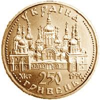 | На аверсі монети в центрі розміщено зображення кафедрального храму Київської Русі, перлини давньо-руської архітектури XI ст. - Софії Київської, обрамлене з боків намистовим узором. Під ним позначено час побудови собору - ХІ ст., відповідний номінал і рік випуску монет. Угорі по колу монет напис УКРАЇНА. |