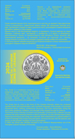 На реверсі монети на дзеркальному тлі рельєфно відтворено орнамент, який уособлює сімейні цінності. У центрі орнаменту розташовані взаємопов’язані елементи, які відображають глибокий символізм родинних зв’язків. Ця сім’я складається зі знаків чоловіка, жінки та їхнього спільного дому. По обидва боки центральної вертикалі розташовані символи дітей. Усі разом вони створюють повноцінний орнамент, що відображає сімейну єдність та гармонію. |