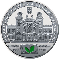| На аверсі медалі розміщено: малий Державний Герб України, у центрі - історична будівля, побудована на початку ХХ століття, в якій розташована академія, угорі по колу написи: НАЦІОНАЛЬНА АКАДЕМІЯ АГРАРНИХ НАУК УКРАЇНИ; унизу - книга, на якій два зелених листки (елемент оздоблення - емаль), по обидва боки від книги колоски та роки 1918 і 2018. |