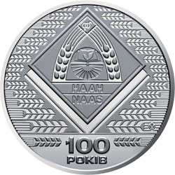 На реверсі медалі на тлі колосків розміщено логотип Національної академії аграрних наук України; унизу написи: 100/РОКІВ, по обидва боки від написів - колоски; логотип Банкнотно-монетного двору Національного банку України (праворуч - на тлі колоска). |