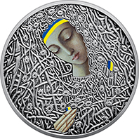 На реверсі монет зображено фрагмент картини “Пробудження” – образ дівчини з блакитно-жовтою стрічкою на голові. Вона стоїть на тлі квітучого безмежжя рідних просторів, символізуючи пробудження України. |