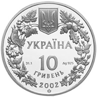 | На аверсі монет в обрамленні вінка, утвореного із зображень окремих видів флори і фауни, розміщено малий Державний Герб України та написи в чотири рядки: на монеті із срібла – УКРАЇНА, 10, ГРИВЕНЬ, 2002, а також позначення металу та його проби – Ag 925, вага в чистоті – 31,1, на монеті з нейзильберу – УКРАЇНА, 2, ГРИВНІ, 2002 та на обох монетах – логотип Монетного двору Національного банку України. |