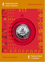 | На аверсі монети розміщено: угорі – малий Державний Герб України, праворуч від якого напис півколом УКРАЇНА; на дзеркальному тлі по колу зображені 12 символів східного календаря, у центрі кола – стилізований годинник зі стрілкою, що вказує на дракона – символ року, під стрілкою – 2024; унизу ліворуч напис півколом 5 ГРИВЕНЬ; на матовому тлі зображені стилізовані під українську витинанку символи кожної пори року: сніжинка (угорі), квітка (праворуч), ягода (унизу), листок (ліворуч); логотип Банкнотно-монетного двору Національного банку України (праворуч над символом тигра). |