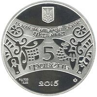| На аверсі монети розміщено: угорі малий Державний Герб України, під яким напис НАЦІОНАЛЬНИЙ БАНК/УКРАЇНИ; у центрі в оточенні стилізованого рослинного орнаменту - номінал 5/ГРИВЕНЬ; унизу рік - 2015, а також позначення металу, його проби - Ag 925, маси в чистоті - 15,55 та логотип Монетного двору Національного банку України. |