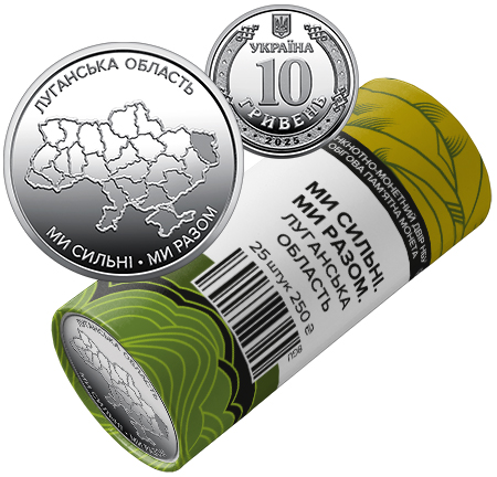 Ролик обігових пам`ятних монет `Ми сильні. Ми разом. Луганська область` (у ролику 25 монет)