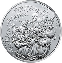 На реверсі монети зображено групу колядників, які співають, один із них тримає різдвяну зірку, над якою написи - ЩЕДРИК, ЩЕДРИК, ЩЕДРІВОЧКА. |