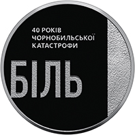 На реверсі монети розміщено напис БІЛЬ, який за змістом перегукується з незавершеним словом на аверсі, а також нагадує про страждання, спричинені наслідками Чорнобильської катастрофи, і глибоку скорботу, що назавжди закарбувалася в колективній пам’яті. У верхній частині композиції – напис 40 РОКІВ ЧОРНОБИЛЬСЬКОЇ КАТАСТРОФИ.