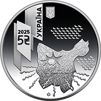 | На аверсі монети на дзеркальному тлі зображено абрис острова Зміїний, який було успішно звільнено за підтримки САУ “Богдана”. Поблизу острова – стилізовані змії, які залишають територію, як символ відступу ворога. Угорі монети – малий Державний Герб України; ліворуч на блискавкоподібних зигзагах, що уособлюють потужність ударів артилерії, розташовані написи: УКРАЇНА (вертикально), рік карбування монети – 2025, а також номінал 5 та графічний знак гривні. Унизу по центру зазначено логотип Банкнотно-монетного двору Національного банку України. |