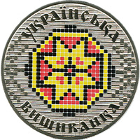 На реверсі монети розміщено кольоровий фрагмент полотна вишиванки (використано тамподрук) , напис півколом УКРАЇНСЬКА (угорі) ВИШИВАНКА (унизу). |